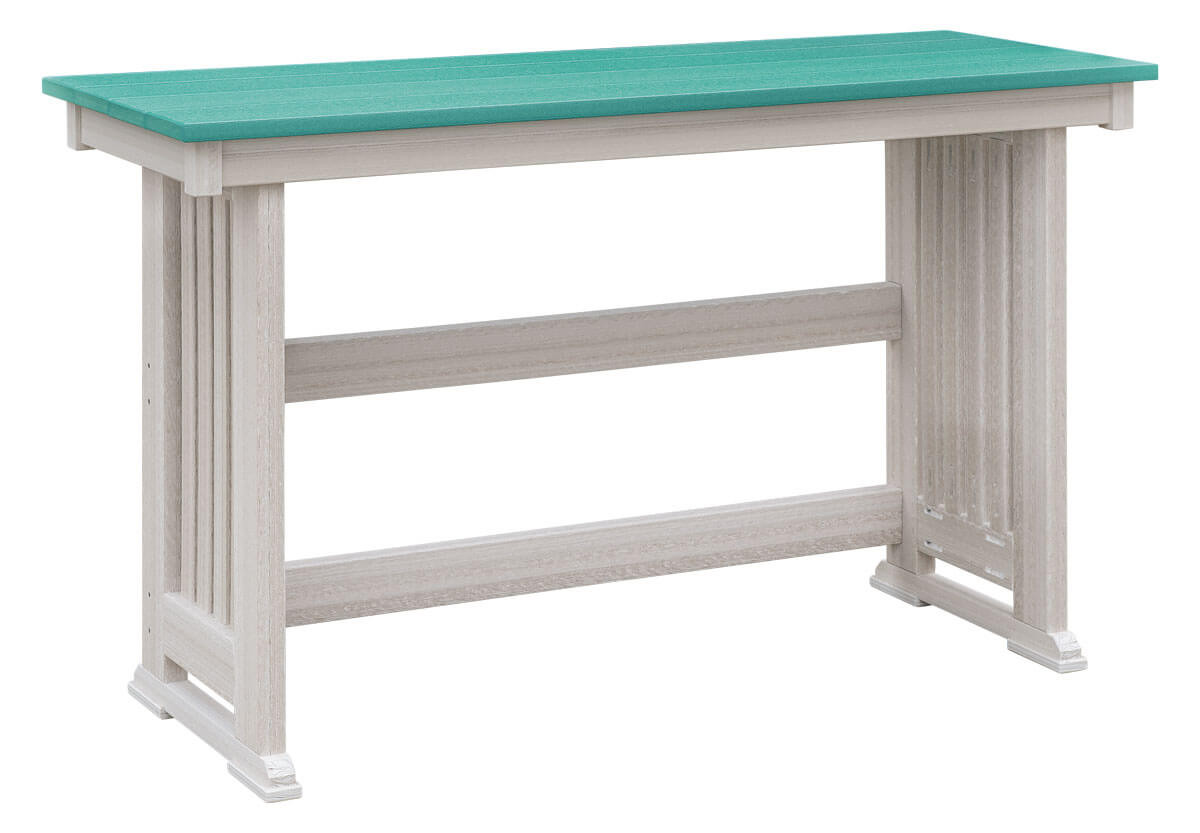 Description Belmar Counter Balcony Table Shown in Aruba/Seashell Available in all poly colors and in bar height.