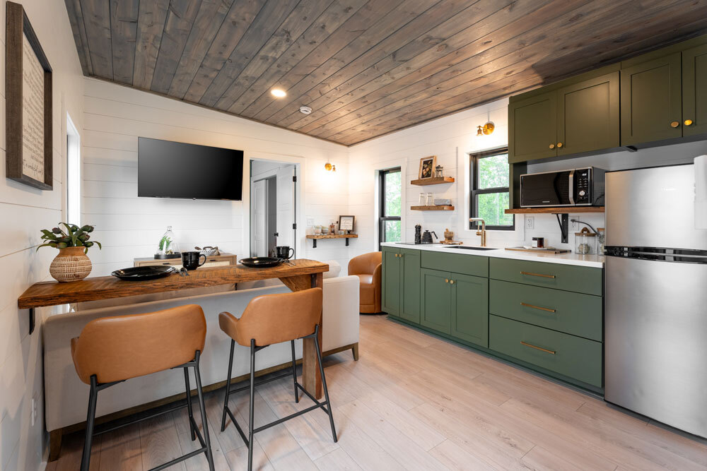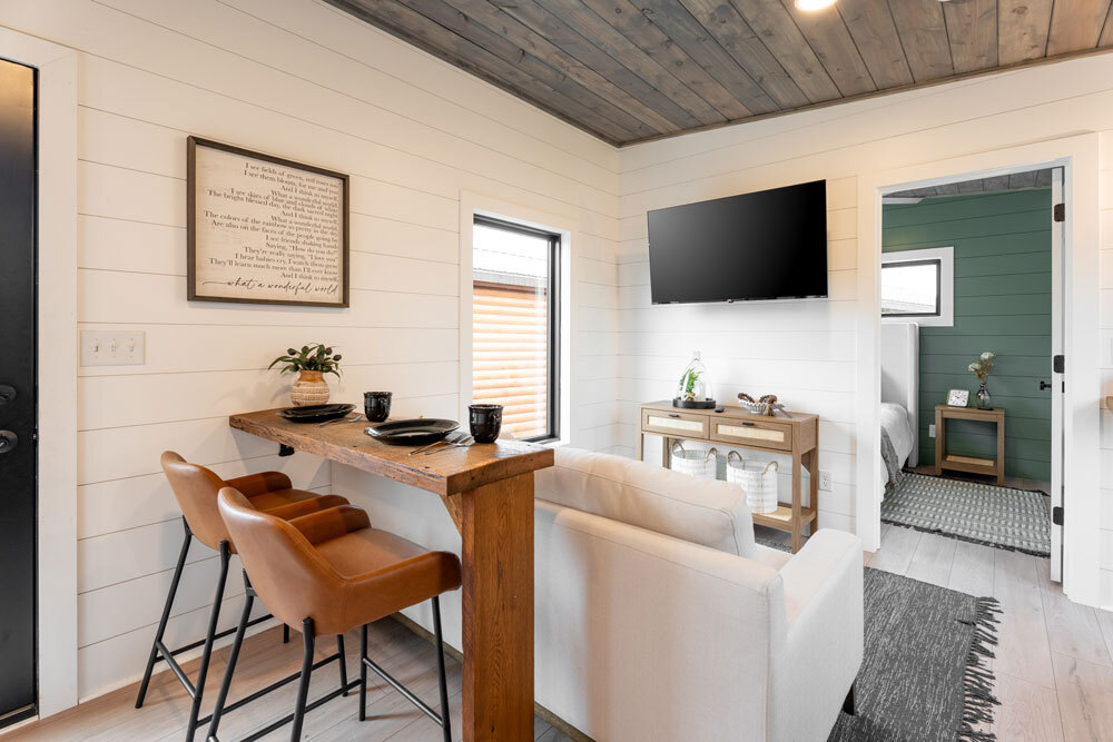 Our Single Slope tiny homes bring contemporary design and energy efficiency to compact living. Whether you're building a rental property, creating a guest house, or downsizing to a simpler lifestyle, these homes deliver modern comfort without the excess. Choose your floor plan, then work with our design consultant to select the finishes that match your vision.