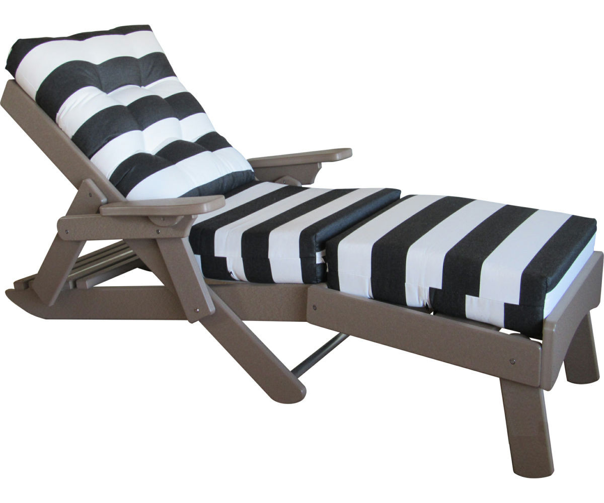 Description Caribbean Folding Chaise Shown in Weatherwood Poly Available in all poly and fabric colors