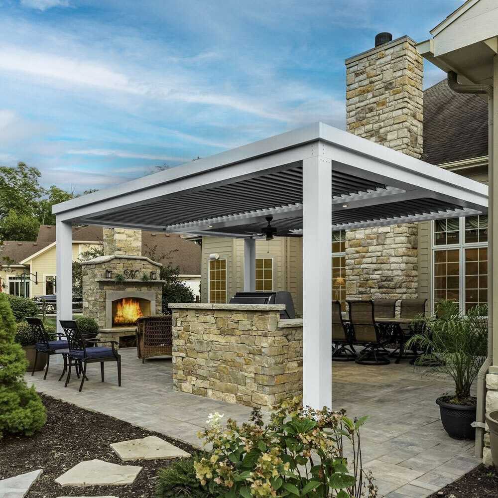 The Struxure Pergola X gives you complete control over your outdoor environment. Built from aircraft-grade aluminum with a powder-coated finish that resists rust and weathering, Pergola X withstands hurricane-force winds and heavy snow loads. Precision louvers rotate up to 170 degrees for exact control over sun and rain. Smart controls via app, remote, or voice let you adjust your environment without leaving your seat.